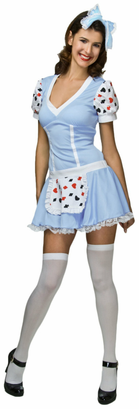 Whether it be a game of croquet or painting the roses red, this “wonder”-full costume will make men lose their heads! The Miss Wonderland Adult Costume includes a blue bow headpiece and a matching blue mini-dress with attached card printed apron and matching sleeves, complete with white lace under the skirt for a flirtacious final look!