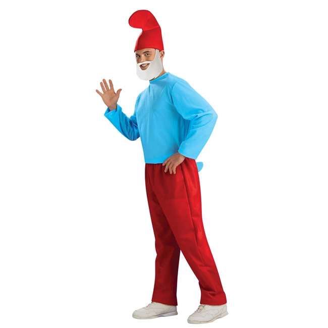 A wise village elder, Papa Smurf always knows what’s best for the Smurfs of Smurf village. This Papa Smurf Adult Costume includes a long-sleeved blue shirt, red pants, and a red Phrygian style headpiece with an attached white beard. Just add Smurf mittens and a tube of blue cream makeup (sold separately) to paint your face blue for an authentic Smurf appearance. Pair with Smurfette, Gargamel, and other Smurf characters (sold separately) for a great Smurf costume theme. This is an officially licensed The Smurfsâ„¢ product.