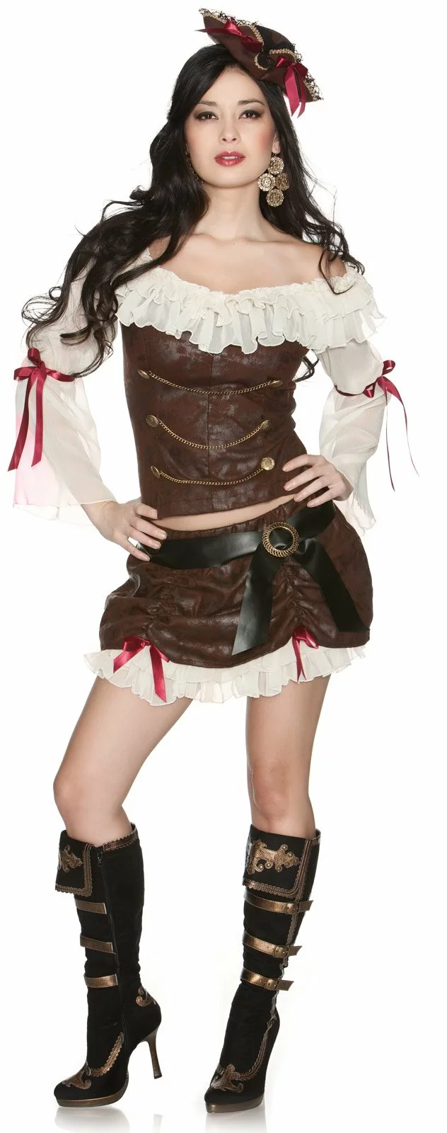 This Retro Sexy Adult Costume includes top, skirt, hat, and belt. Does not include shoes.