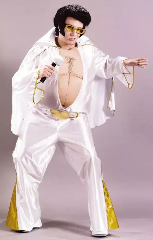 World’s Largest Rock Legend Costume includes: One-Piece Padded Chest and Belly with attached Shirt and Cape. Pants, Belt and Microphone. Self-lock strip closure in back.Available size: